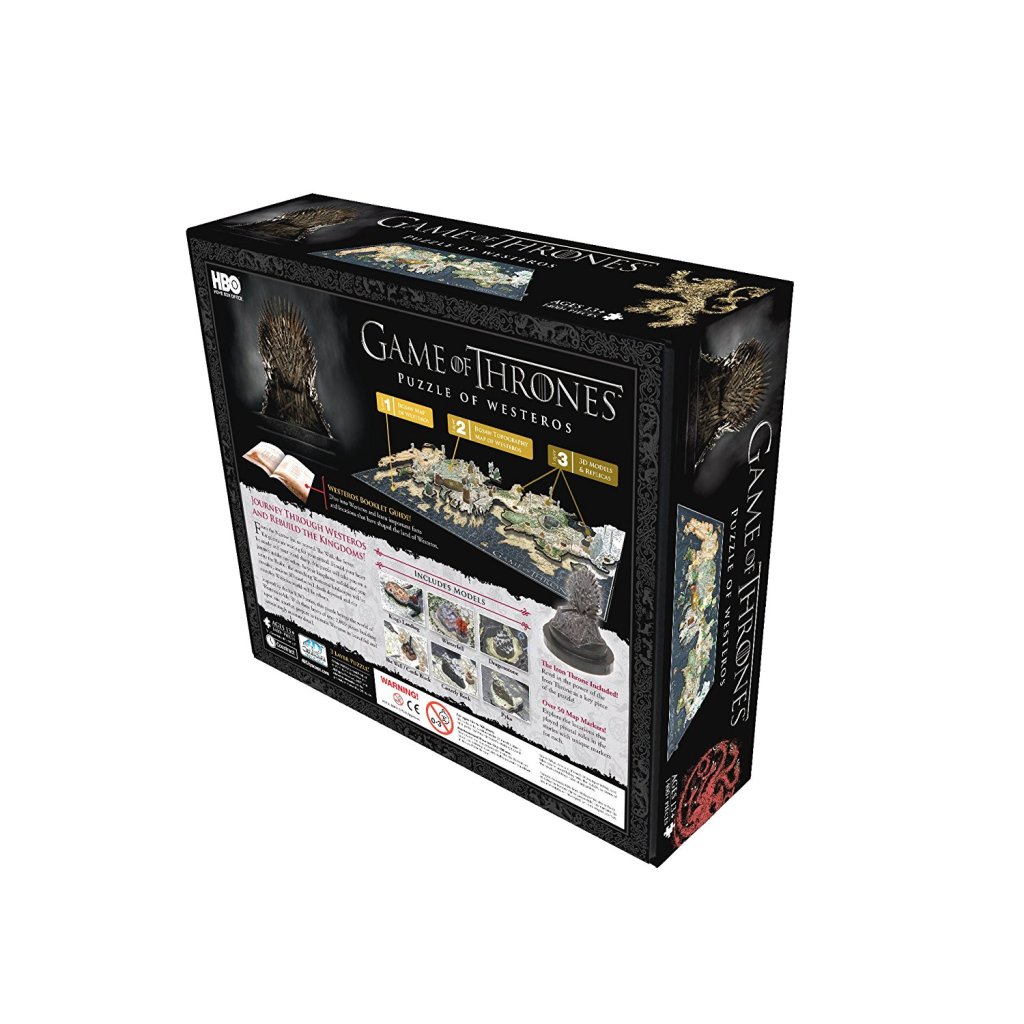 A Trónok harca motívumával ellátott egyedülálló puzzle 1400db puzzle darabot tartalmaz, amelyek segítségével Wasteros egyedülálló térképét tudja összerakni. Ez a térkép nem egy akármilyen térkép, hanem egy részletgazdag térkép, amelyen megtalálhatók az egyes városok miniatűr 3D modelljei.